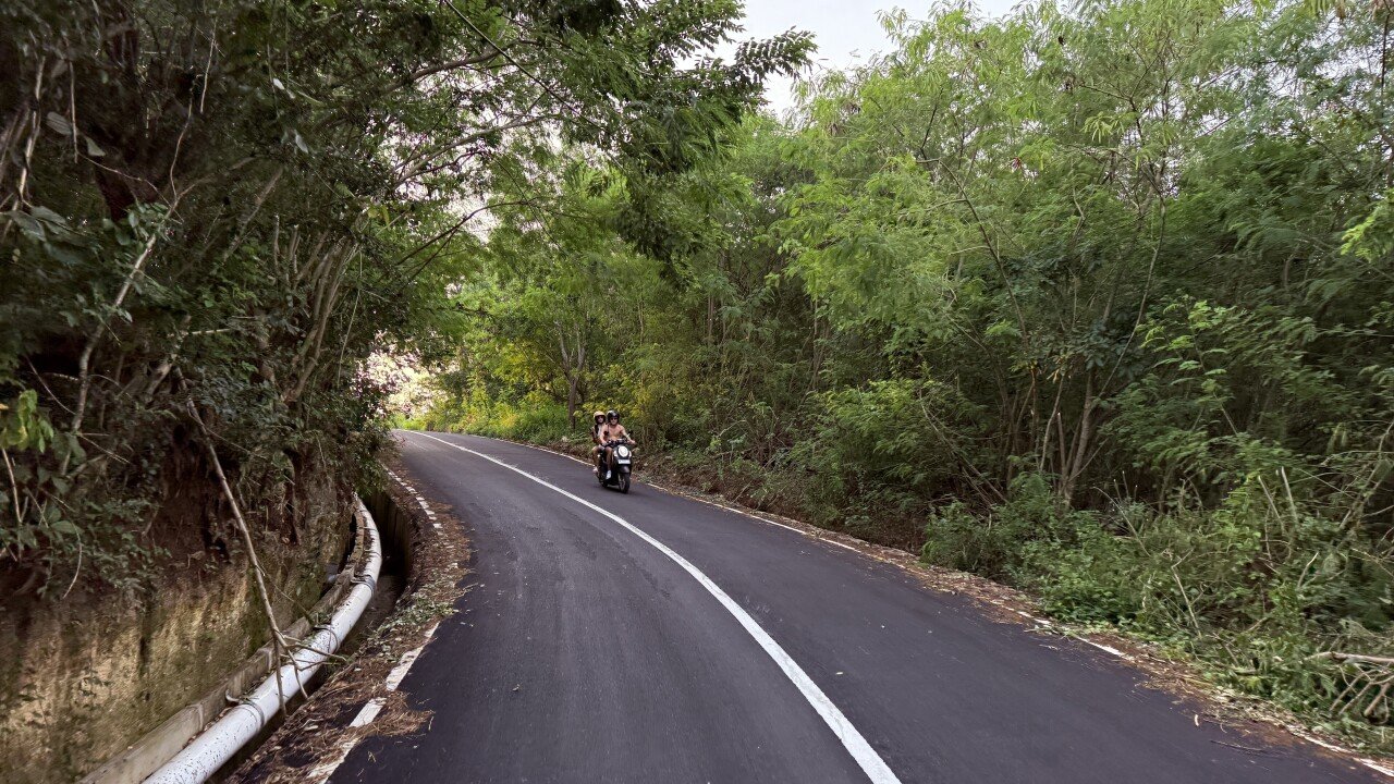 All the more so because another short road has appeared to replace the one that was blocked. Perfectly smooth tarmac and almost no change in elevation mean you can get much faster from Labuan Sait—with its many popular cafés and Padang Padang beach—to Nyang Nyang and Uluwatu Temple.