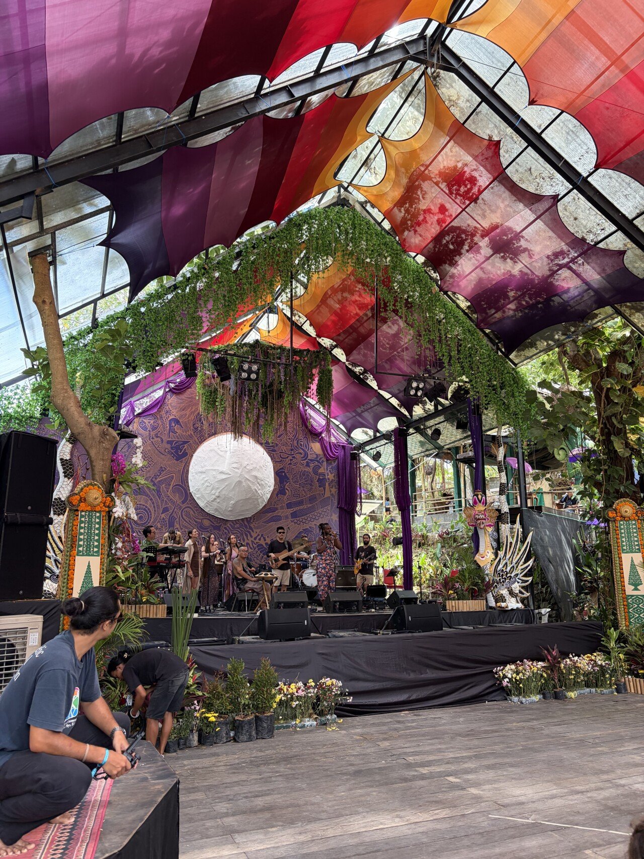 The festival’s main stage and the epicentre of large-scale performances and evening concerts. This is where the opening ceremonies, Balinese traditional performances and powerful music sets took place, bringing hundreds of people together for free dance.
