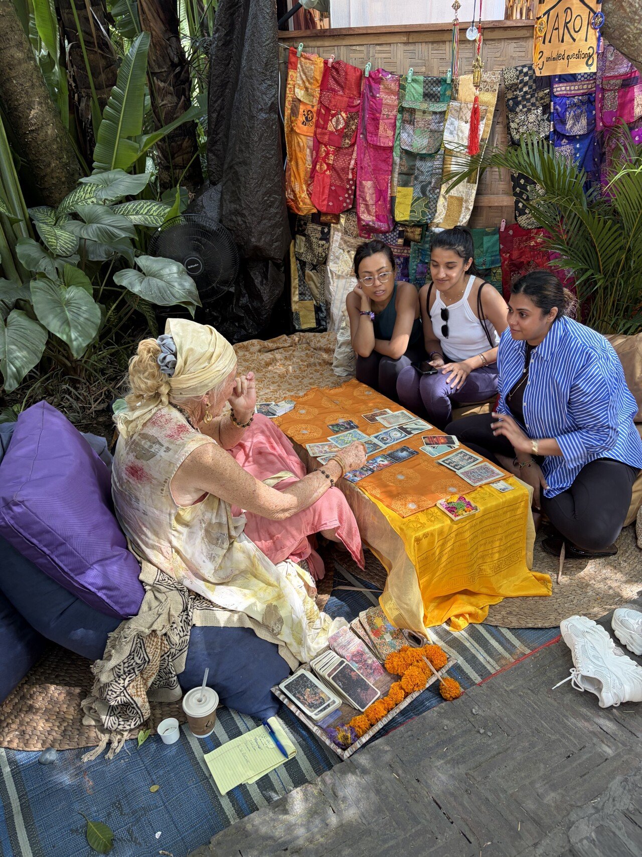 There was a huge variety of practices at the festival: yoga and meditation, women’s circles, relationship talks, talks on body pain from guest speakers not only from Bali, dance practices, kirtans, mandala-weaving workshops, drumming masterclasses, Human Design, astrology and Tarot readings, and much more — everyone could find something they were genuinely interested in. There were many practitioners who have been based in Bali for a long time, as well as invited speakers.