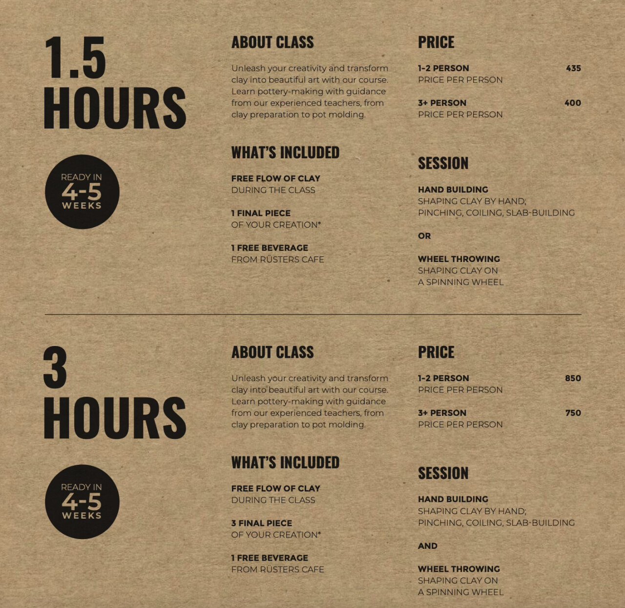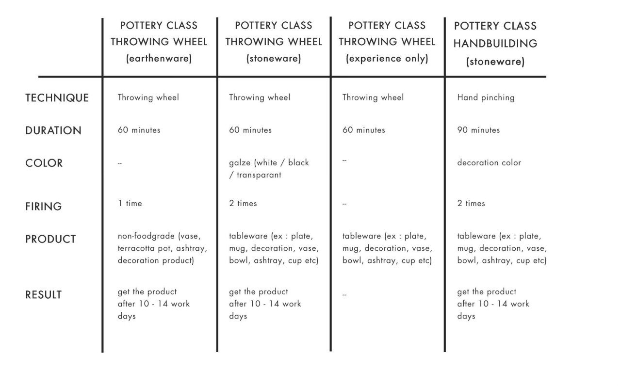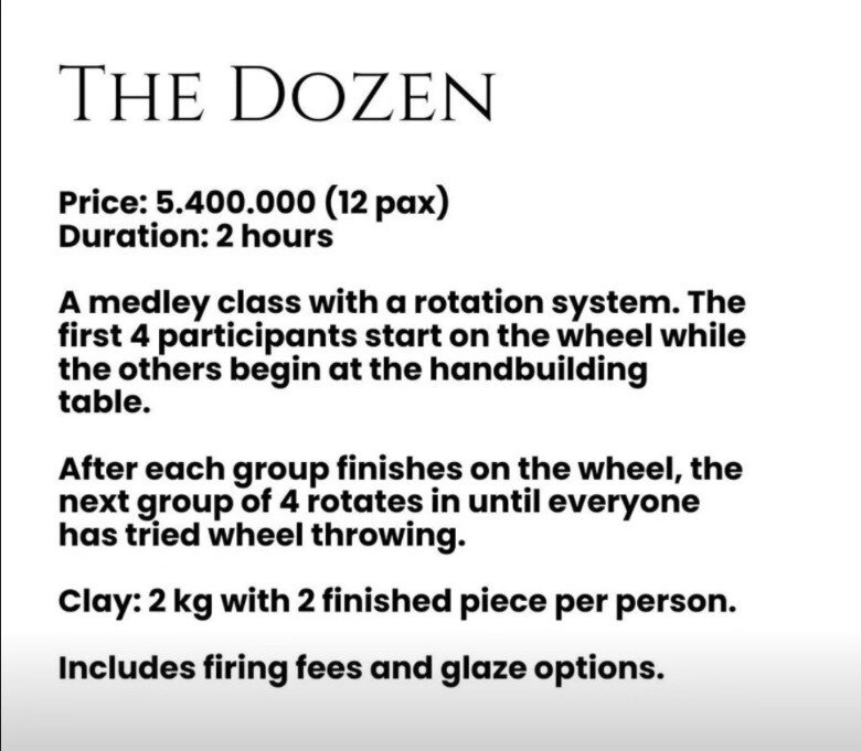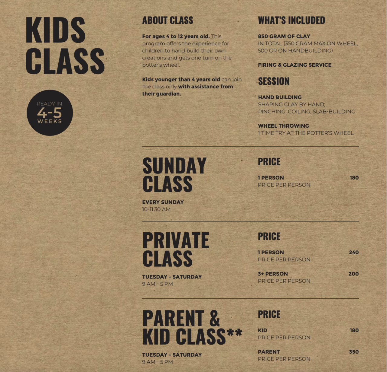- 3 classes, 6 pieces, 6 kg of clay — 1,100,000 IDR
