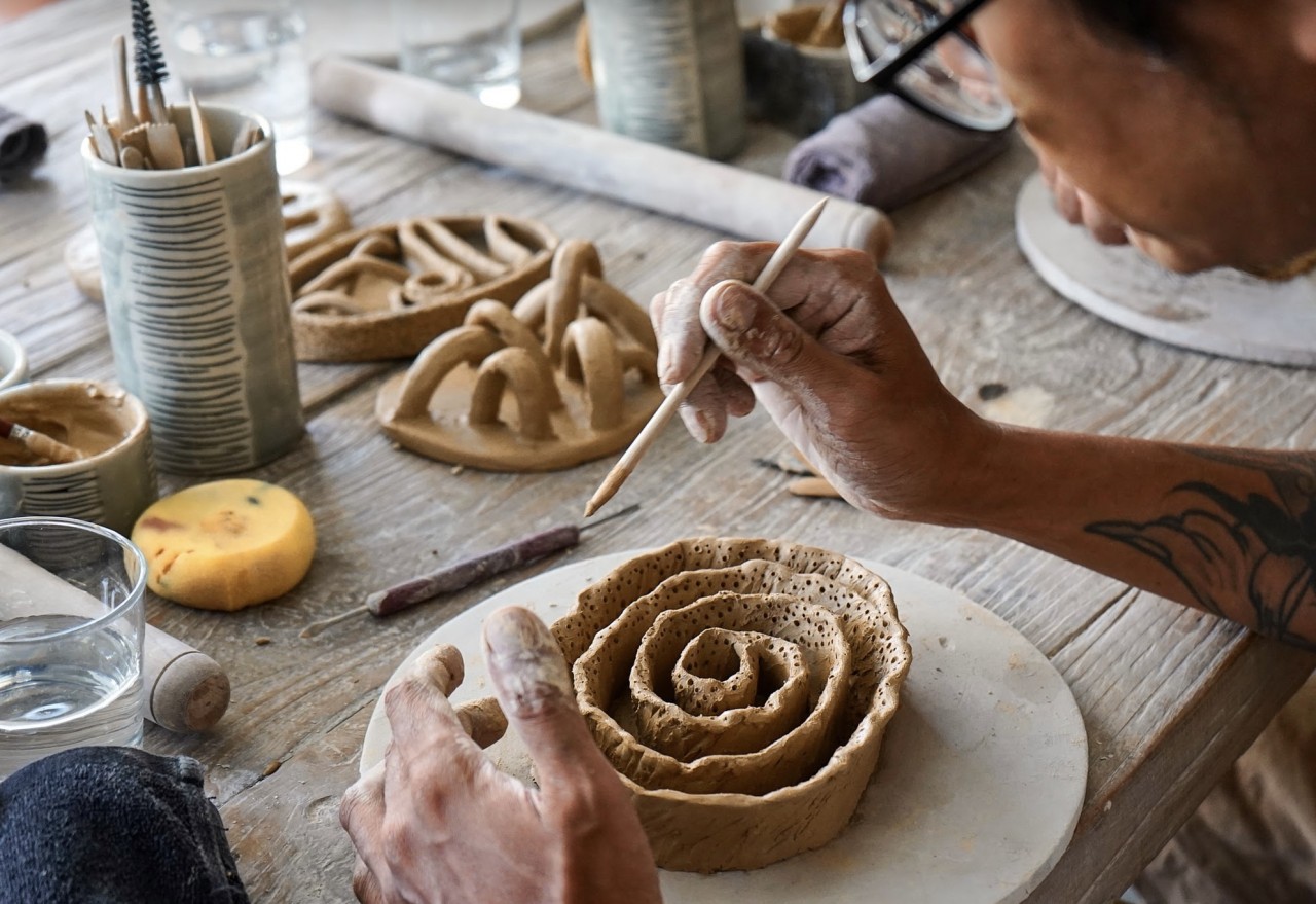 You can create two creative pieces. Duration: 1.5 hours; handbuilding instruction; 1.5 kg of clay; equipment, paint and tools; two pieces for firing (ready in 3–4 weeks).