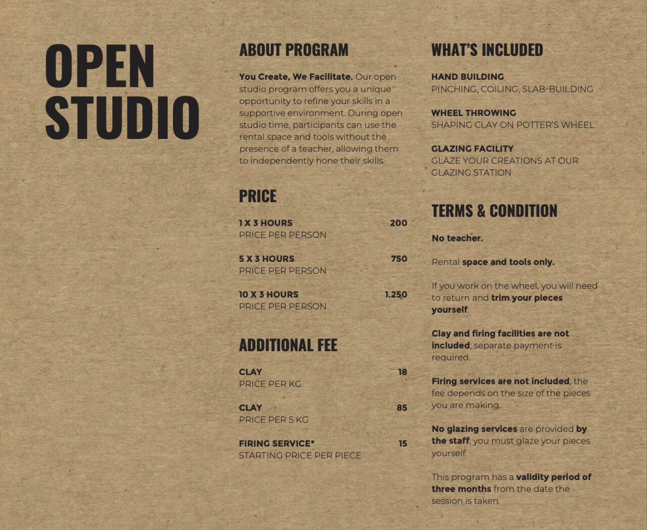 For those who already have experience with clay and want to work independently, without an instructor, using the space for their own projects.