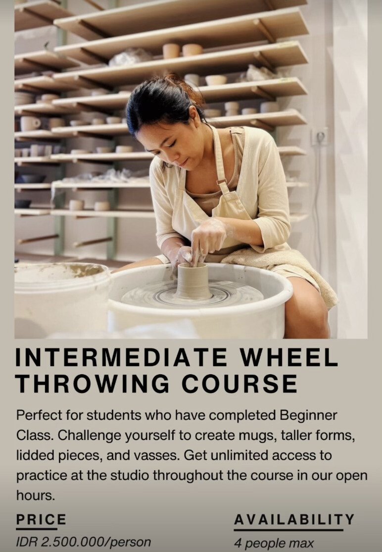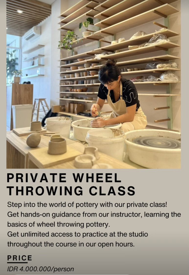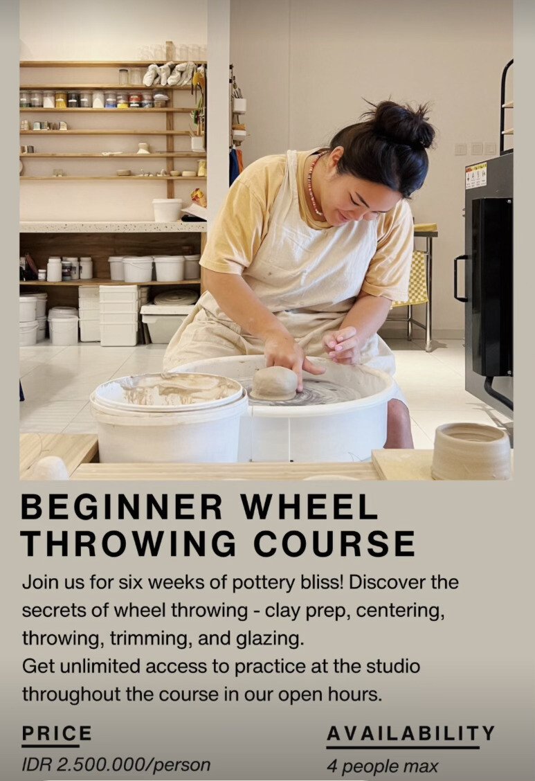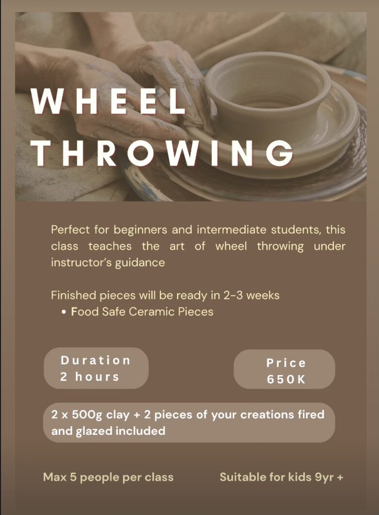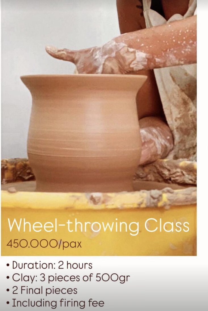 Wheel throwing, as usual, is more expensive — 600,000 IDR for a lesson of the same length.