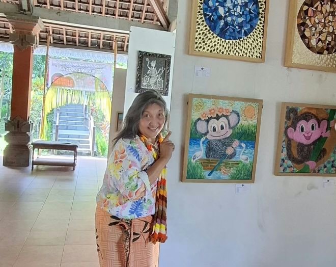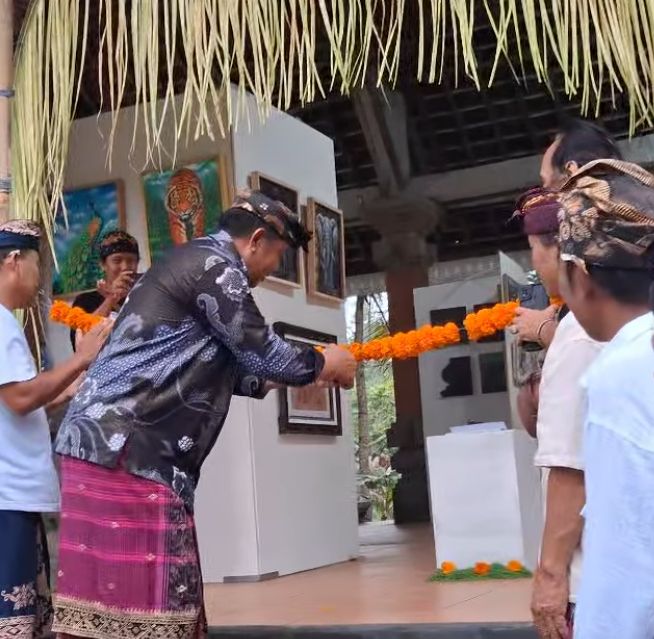 The Humanity exhibition by the Wajah Art Community is taking place at the Goa Gajah temple complex near Ubud. There are 28 artists participating, each showcasing 3–5 works, making it dozens of pieces in one venue. The exhibition opened on January 25, 2026, and will last for a month.