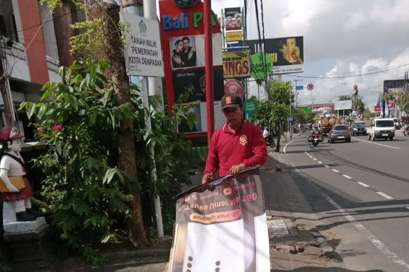 Bali's Municipal Police (Satpol PP) conducted an operation in central Denpasar aimed at tackling illegal outdoor advertising.