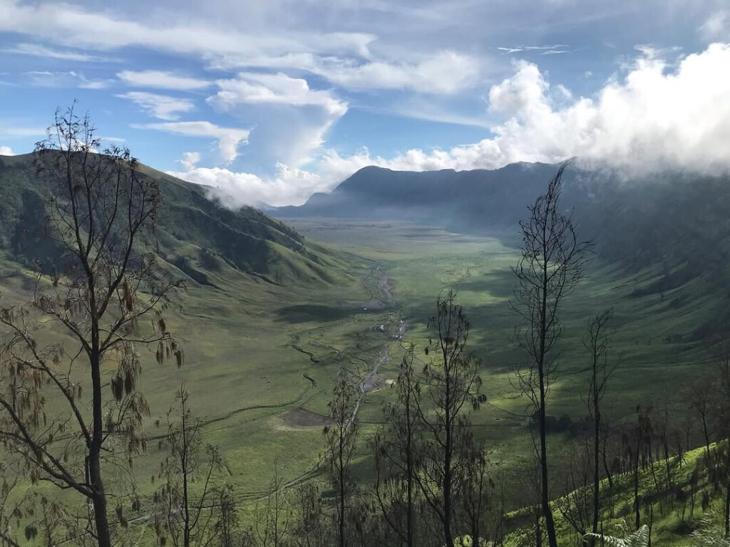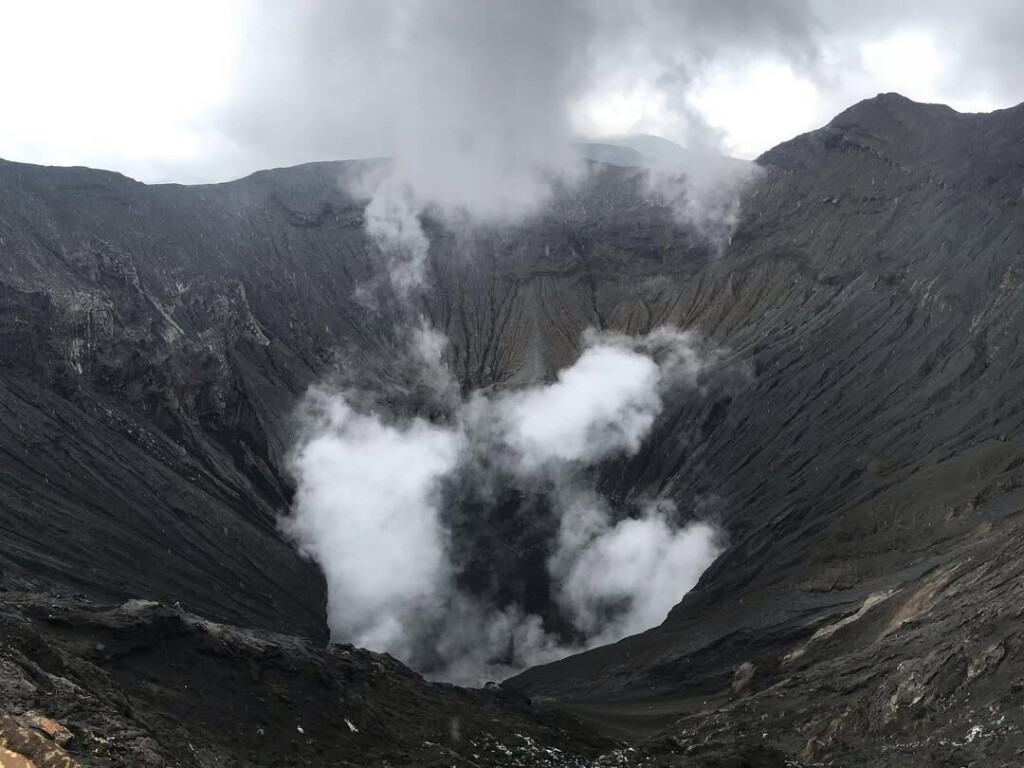 At first, it was easy: sunshine, clouds, Mars-like landscapes, black sand desert. But the walk took three hours. The climb to Bromo itself was short — only 300 steps — and we were standing at the edge of the crater, smoke rising from within. Truly unforgettable.