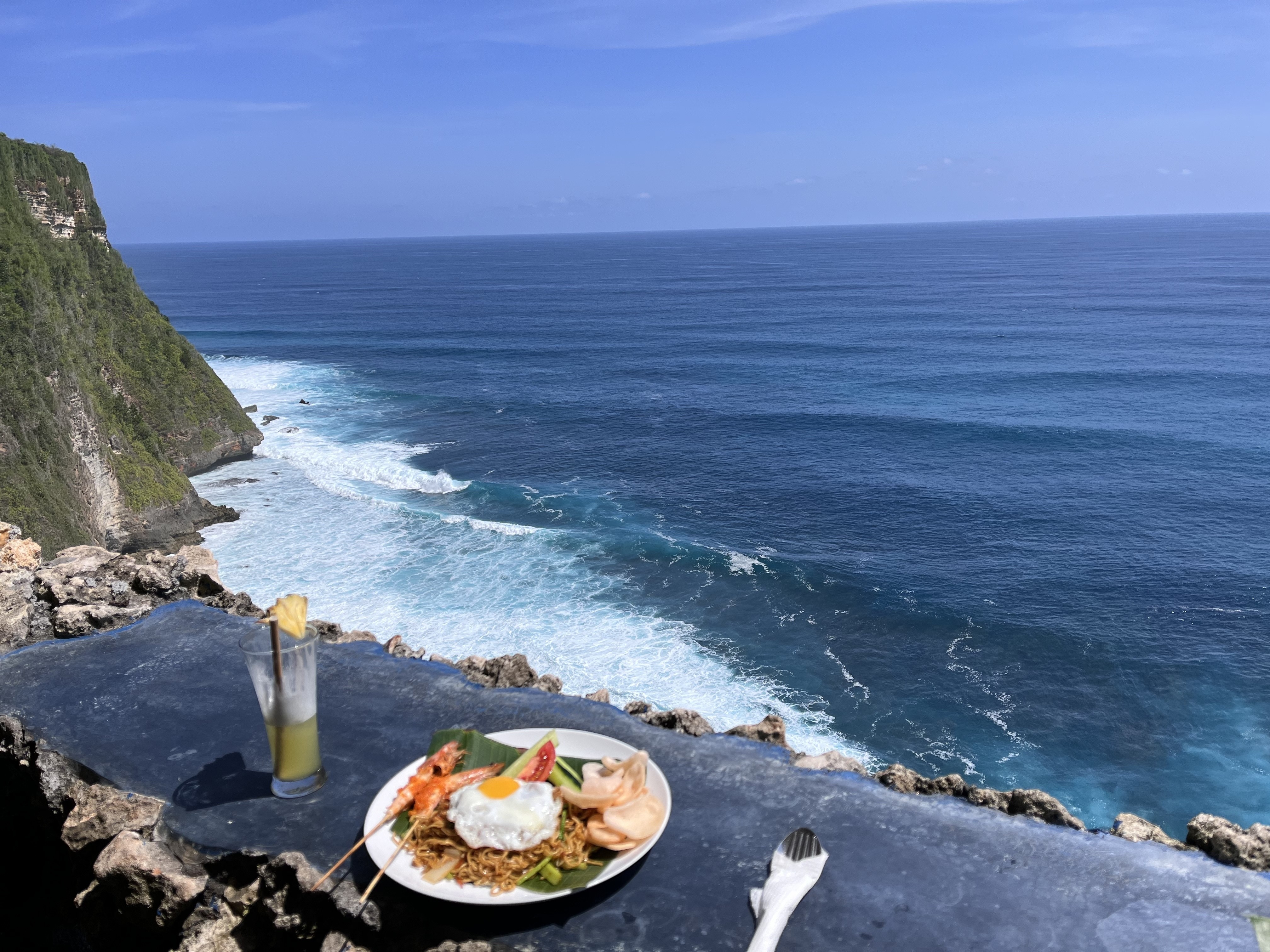 Our first stop is a romantic restaurant on the cliff. They serve seafood, but the prices are not high. Malini Uluwatu - SEAFOOD & SUNSET.