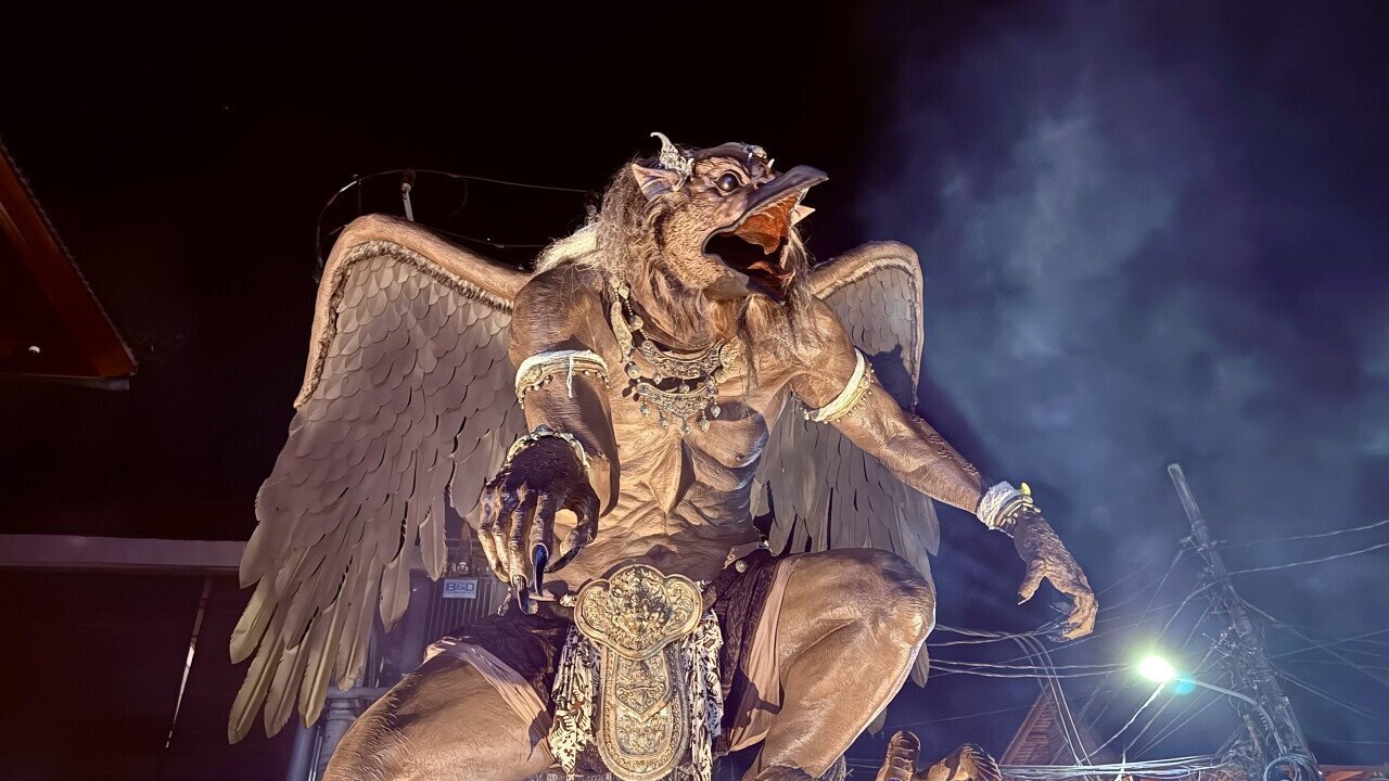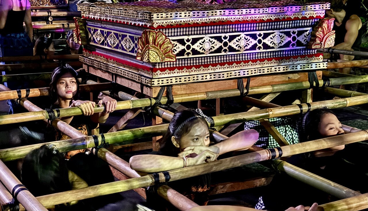 The performers prepare dances and short theatrical sketches inspired by Hindu epics. And the Ogoh-ogoh figures come to life in these scenes thanks to the coordinated work of the bearers, who lift the sculptures into the air on bamboo platforms.