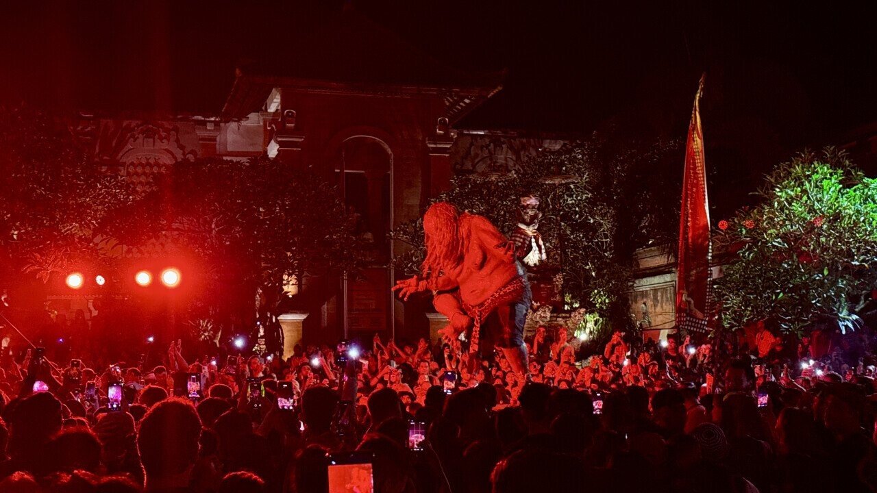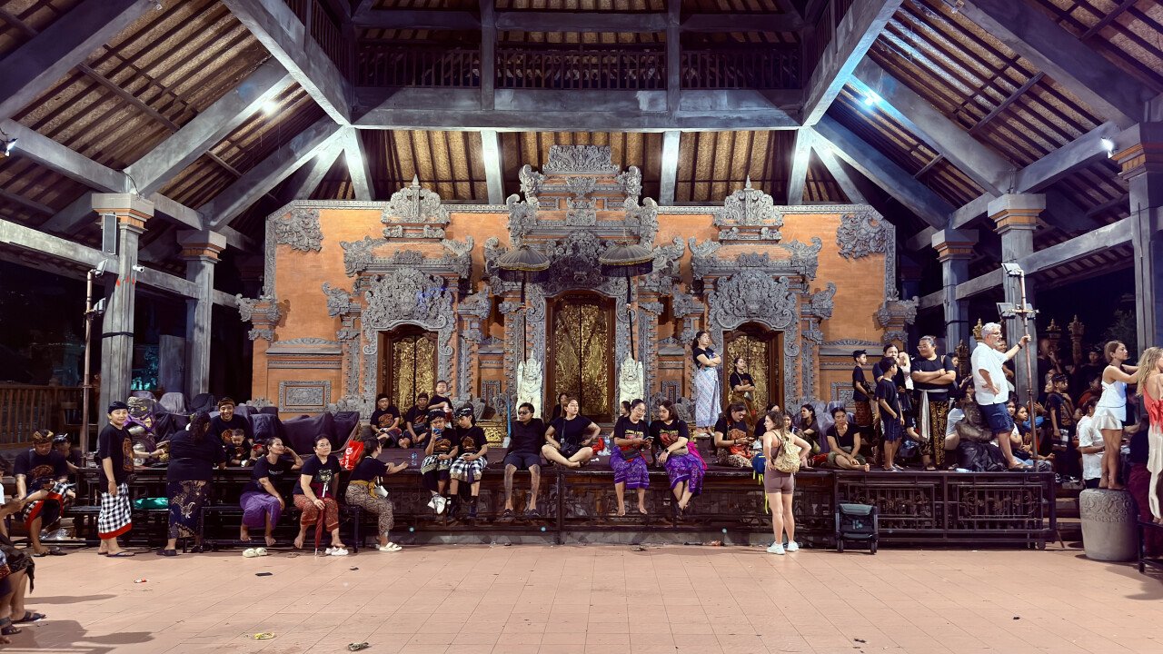 While some people worried about the long breaks, others made the most of them. It was a good time to rest, change your viewpoint, or pop into the nearest shop for water. Restaurants and cafés in central Ubud stayed open until the end of the performance.