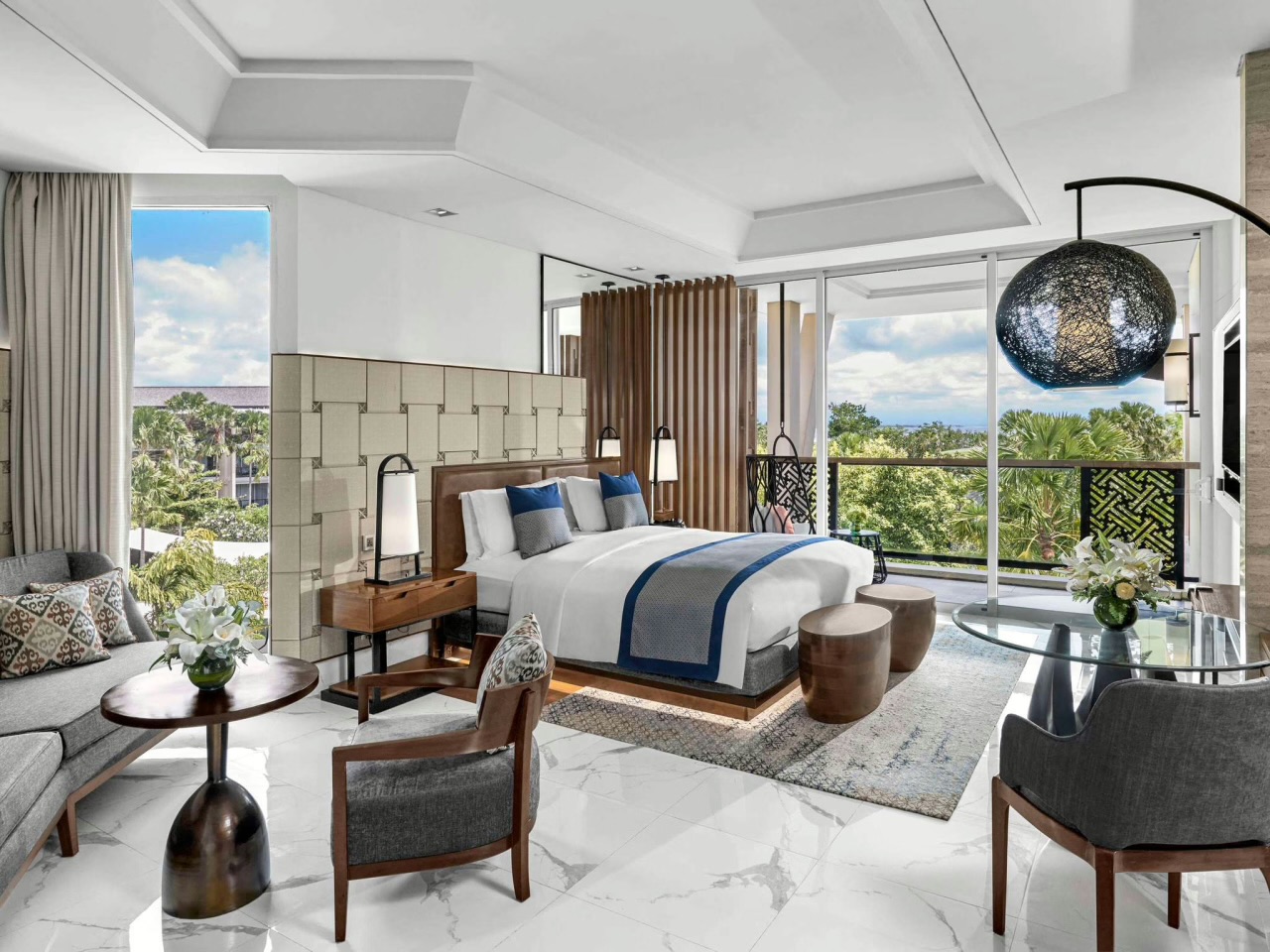 In Bali, Sofitel Nusa Dua stands out for its blend of French elegance and local traditions. Architects from WATG created a spacious and harmonious setting where modern lines are complemented by natural materials, wood carvings, and soft tones.