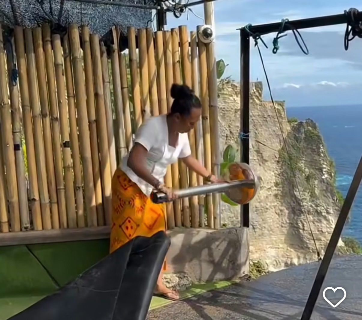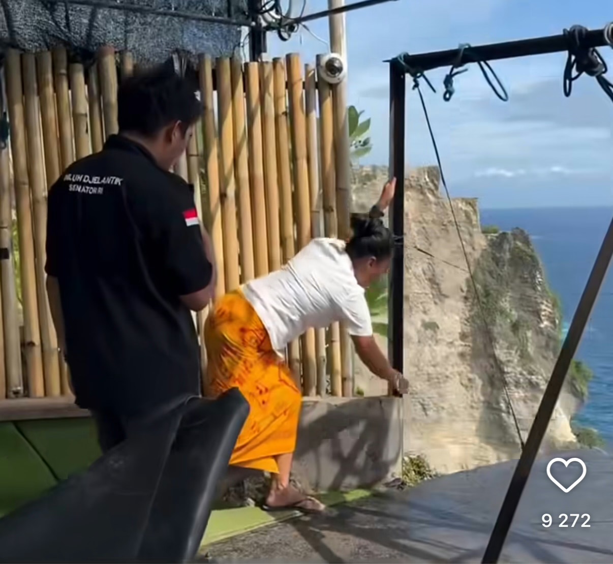 A video from the picturesque cliff on Nusa Penida is going viral on Indonesian social media now. It features Niluh Djelantik, a well-known activist and senator from Bali province among Russian-speaking expats, approaching the edge of a cliff and trying to break metal beams. She then takes hold of a heavy post and makes repeated attempts. The woman did not succeed in her plan, which made her even more frustrated…