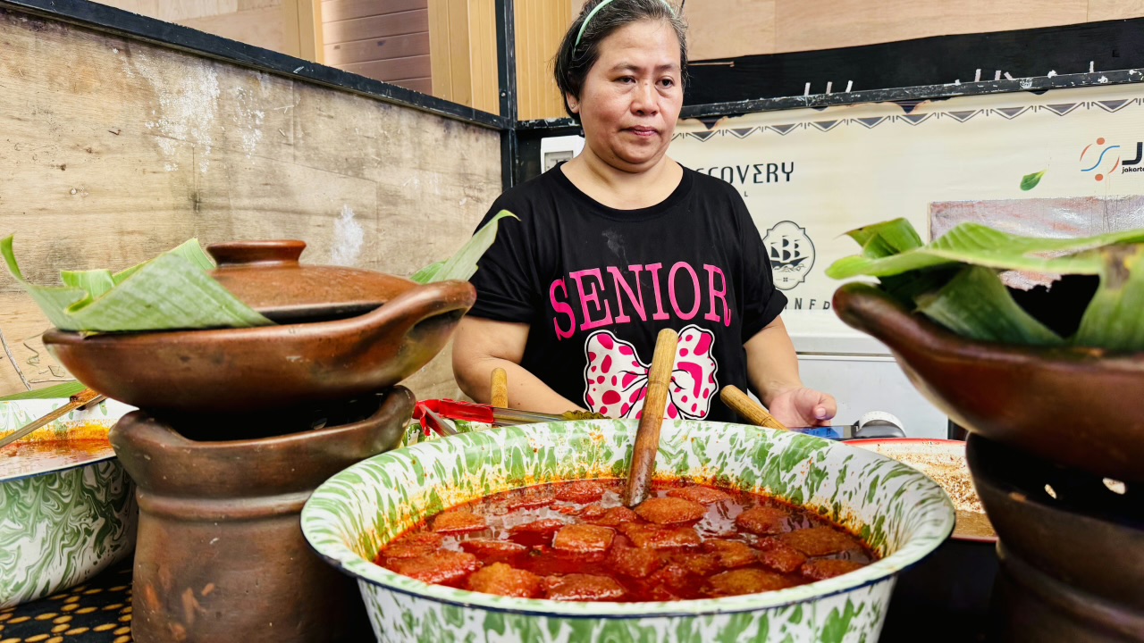 On the next stall, the woman from Kalimantan offers something very spicy. That color of food can't lie. Let's leave it for next time, as we'll need our taste buds for other dishes today.