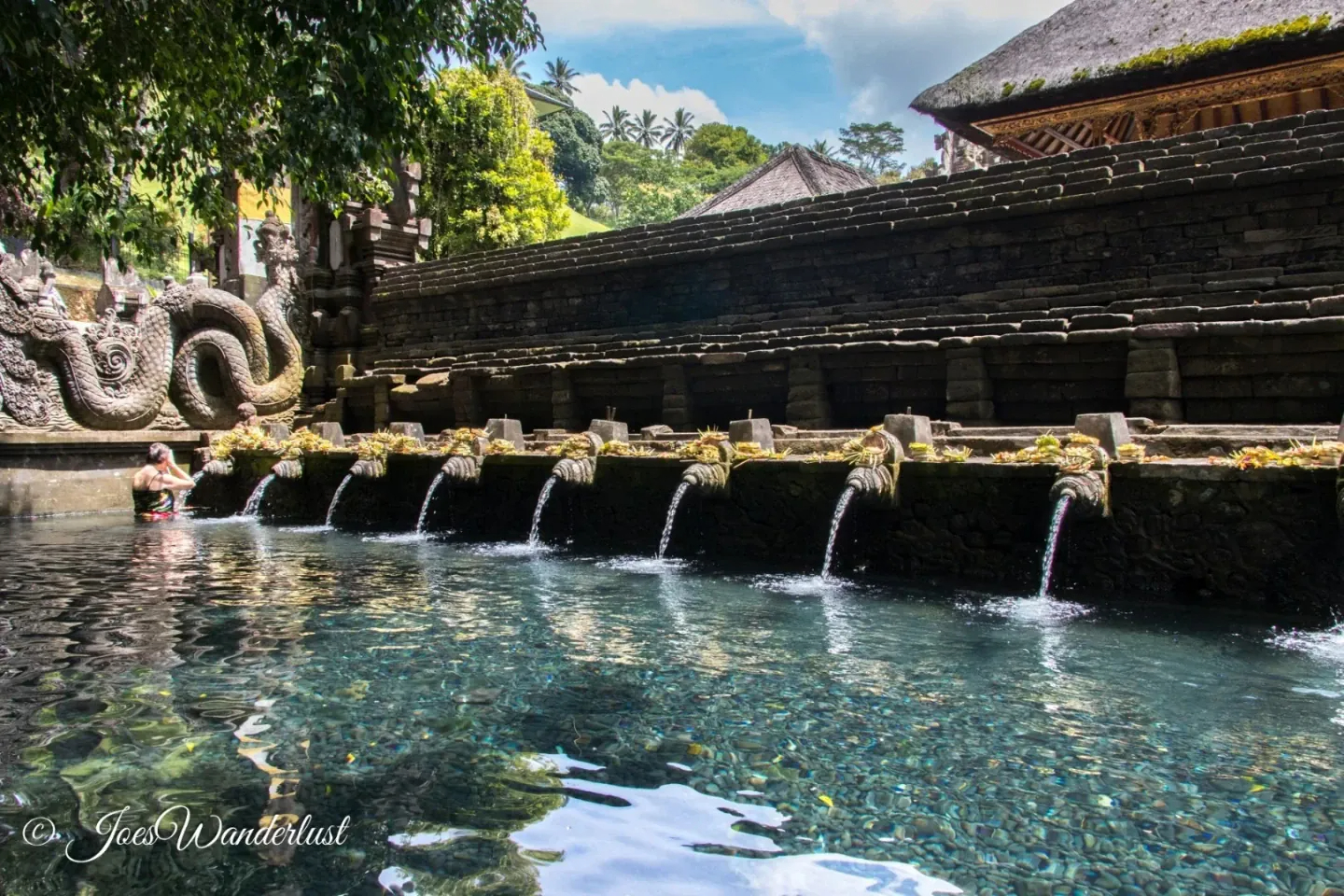 Thanks to the sacred spring flowing through the Pura Tirta Empul, this location is one of the most important sacred sites. Here, locals and visitors can come for spiritual cleansing. Internal fountains channel water from the spring into a long rectangular pool, where the purification takes place.
