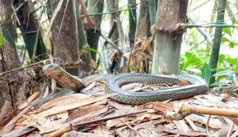 "Local residents reported encountering the female king cobra. It was 266 centimeters long, with a body circumference of 13 centimeters. It had built a nest in bamboo 91 centimeters long," reported Ni Putu Astrid, chairperson of Yayasan Reptil Asih Tabanan. The cobra was incubating 32 eggs. The snake and clutch were immediately sent to a nursery.