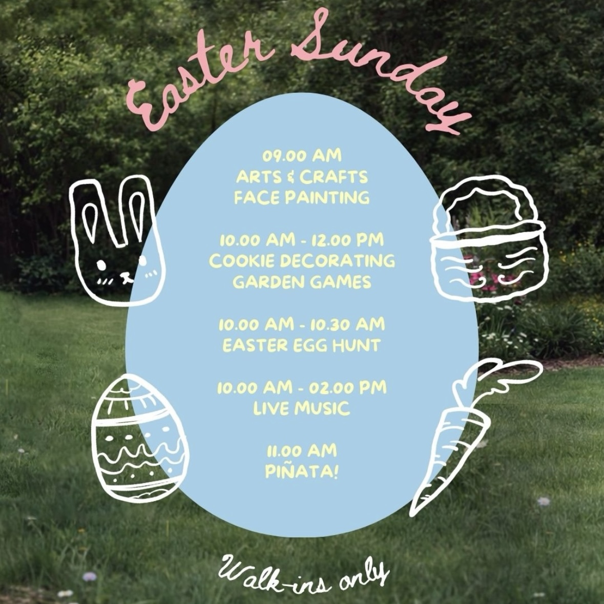 If you’re after something simple and fun for the whole family this Easter, head to Milk & Madu. From 9:00, they run a full day of festivities across four locations. The programme includes an Easter egg hunt, cookie decorating, face painting, workshops, a piñata, and live music.