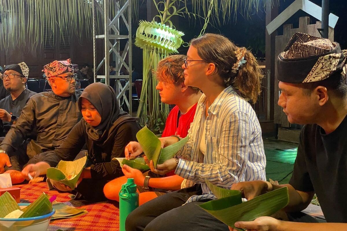 “Thousand Tumpengs”: every family sets out a cone-shaped mound of yellow rice with side dishes in front of their home. The streets turn into one long communal table. After prayers, everyone shares food with each other—a celebration of unity and gratitude.