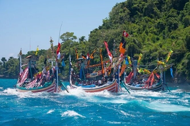 A sea ritual of gratitude from Java’s largest fishing port. Colorfully decorated boats head out into the ocean, carrying offerings—flowers, food, symbolic gifts. Back on shore: prayers, gamelan music, and community celebrations.