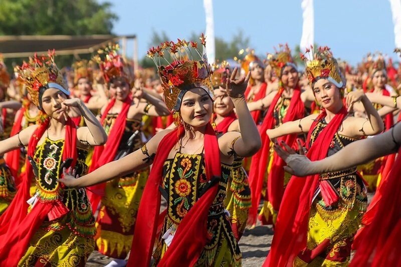 A thousand dancers perform the traditional Gandrung dance in perfect sync at sunset, overlooking the Bali Strait. It’s not just a performance—each movement tells the story of Banyuwangi’s resistance against colonial rule. One of Indonesia’s most visually striking events.